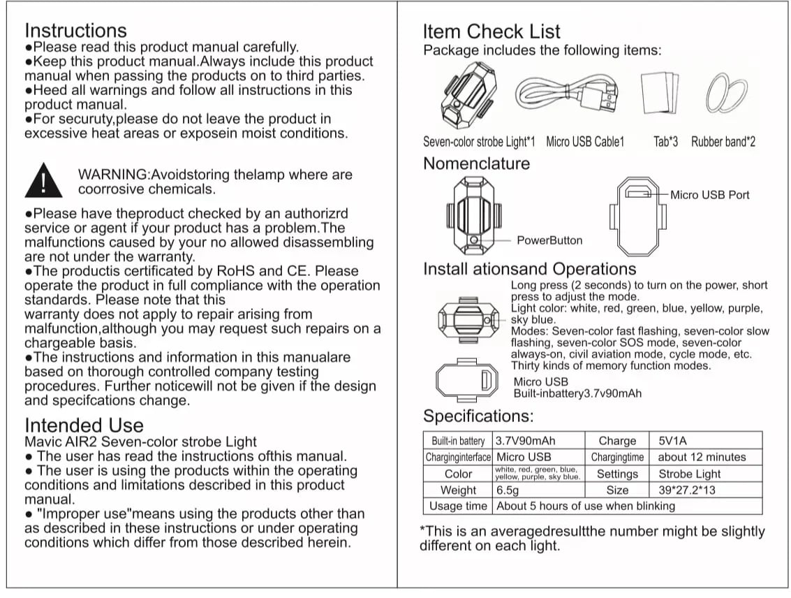 Packing list: 1 * Strobe Light 1 * Type-C charging cable 2 * Fixing tape 2 * ring belt 1 * Magnet